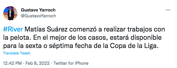 Con mucha suerte, Suárez podrá estar disponible para sexta o séptima fecha de la Copa de la Liga. Por ende, antes de fin de año ya podrá estar al lado de sus compañeros en la cancha. Si bien se va a perder algunas fechas de la Copa Libertadores, podrá volver nuevamente con todas sus ganas al césped.