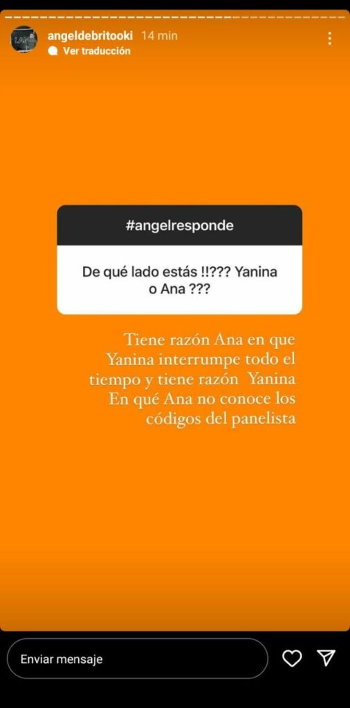 «¿De qué lado estás? ¿Yanina o Ana?», le consultaron al actual conductor de América TV. «Tiene razón Ana en que Yanina interrumpe todo el tiempo. Y tiene razón Yanina en que Ana no conoce los códigos de panelista», lanzó Ángel sin querer seguir aumentando la polémica. Como sabemos, la mamá de Lola y Dieguito lleva ya con él varios años. Y si bien Rosenfeld forma parte del medio por tener a cargo los casos más famosos de las celebridades, es la primera vez que hace panelismo.