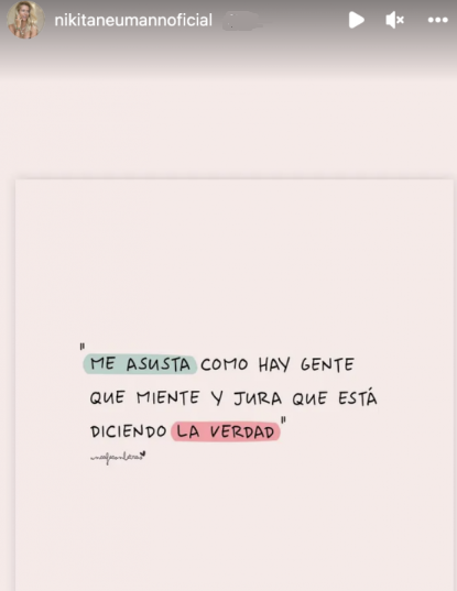 «Me asusta como hay gente que miente y jura que está diciendo la verdad«, expuso la integrante de «Los 8 escalones del millón» citando a una página de frases de la red social de la camarita. Sin duda, ese gesto de la famosa captó la atención de más de uno por todo lo que se estuvo exponiendo de las menores en los últimos meses.