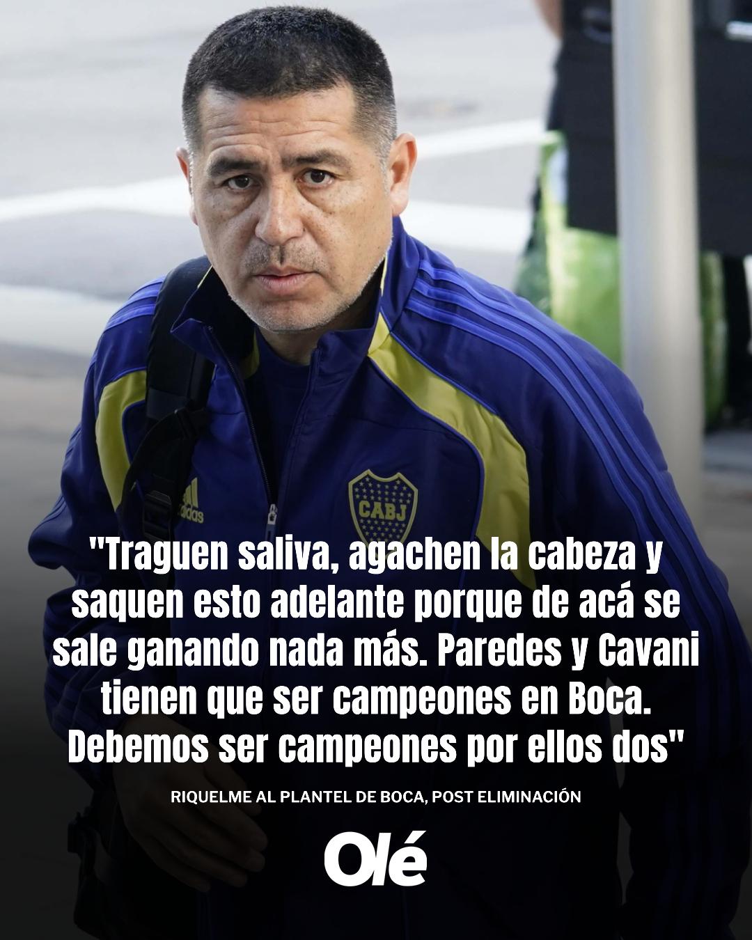 «Traguen saliva, agachen la cabeza y saquen esto adelante porque de acá se sale ganando nada más», informó el citado medio que les dijo Riquelme a los jugadores de Boca en el vestuario luego de la dura derrota ante Atlético Tucumán en Santiago del Estero.