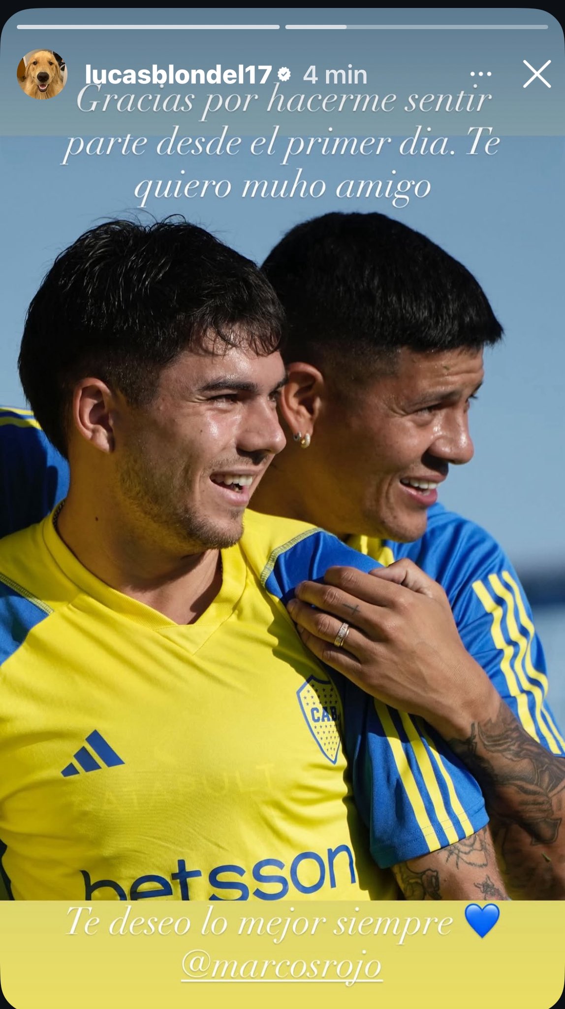 Blondel, curiosamente, es uno de los jugadores de Boca que se animó a despedir a Marcos Rojo en redes sociales, pese a la oposición de muchos hinchas del Xeneize hacia el defensor. «Gracias por hacerme sentir parte desde el primer día. Te quiero mucho amigo», escribió Blondel en una historia de Instagram junto a Rojo.