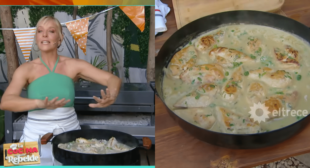 «Una vez bien dorado, retirar. En la misma sartén hay que sumar la cebolla, el ajo y la parte blanca del verdeo. Saltear hasta dorar bien y desglasar con vino blanco. Incorporar el pollo nuevamente y sumar el caldo de verduras. Cocinar por 10 minutos a fuego medio. Últimos 2 minutos de cocción sumar la crema de leche», finalizó.