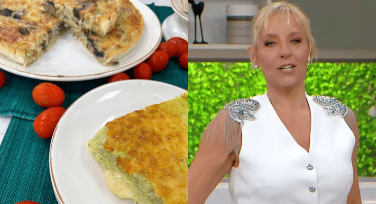 Inmediatamente, detalló cómo hacer la tarta de champiñones. «Colocar la masa en la tartera. Corta la cebolla en pluma y en cuartos los champiñones. Saltear con un poco de aceite y ajo. Levantar el fondo de cocción con el vino, salpimentar. Mezclar los champiñones con los huevos, la crema, el queso. Volcar en la tartera y espolvorear con parmesano. Cocinar por unos 25 minutos», finalizó.
