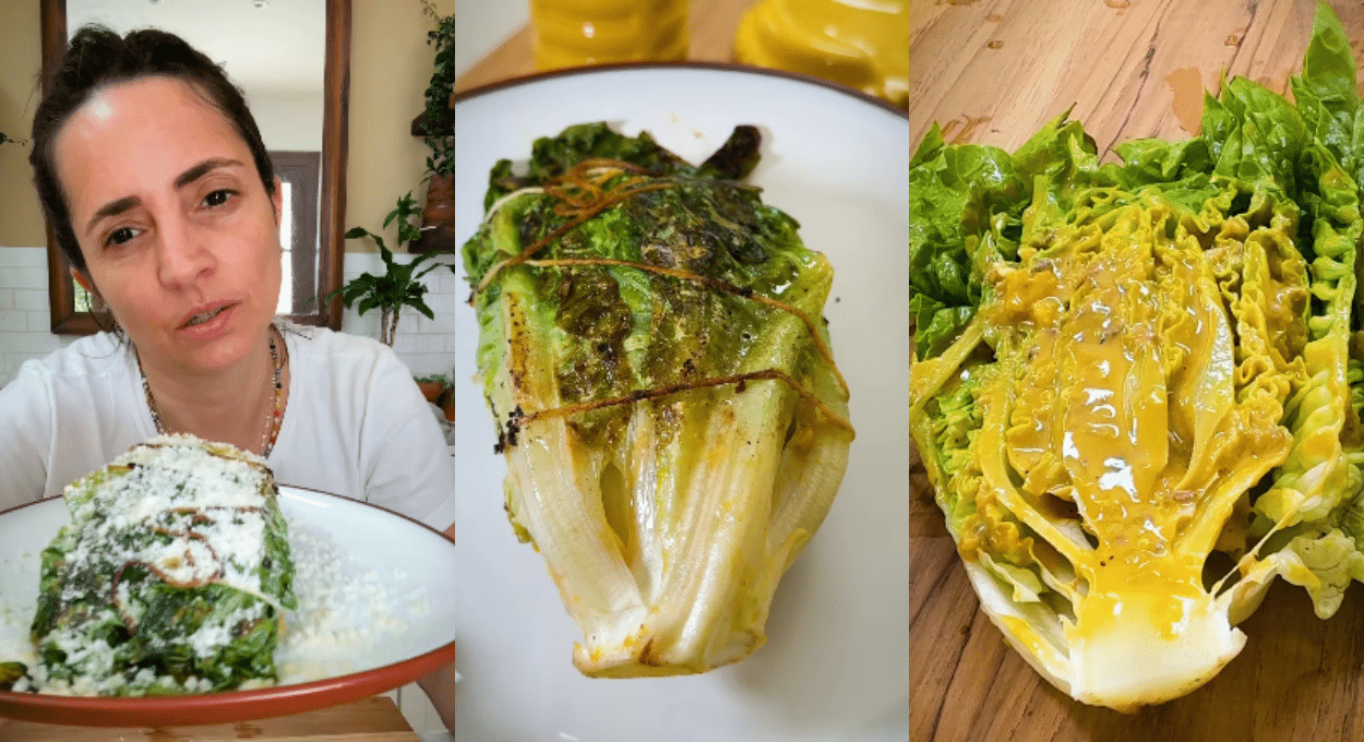 «Miren esto: lechuga césar grillada ¿Qué? Es pariente de la receta de ensalada césar, pero NO es lo mismo. Esta es una receta con lechuga que quizás no hicieron antes, pero créanme que vale la pena, y más si les gusta la salsa césar (como a mí, dios, larga vida la receta de salsa cesar)», comenzó diciendo en su cuenta de Instagram.