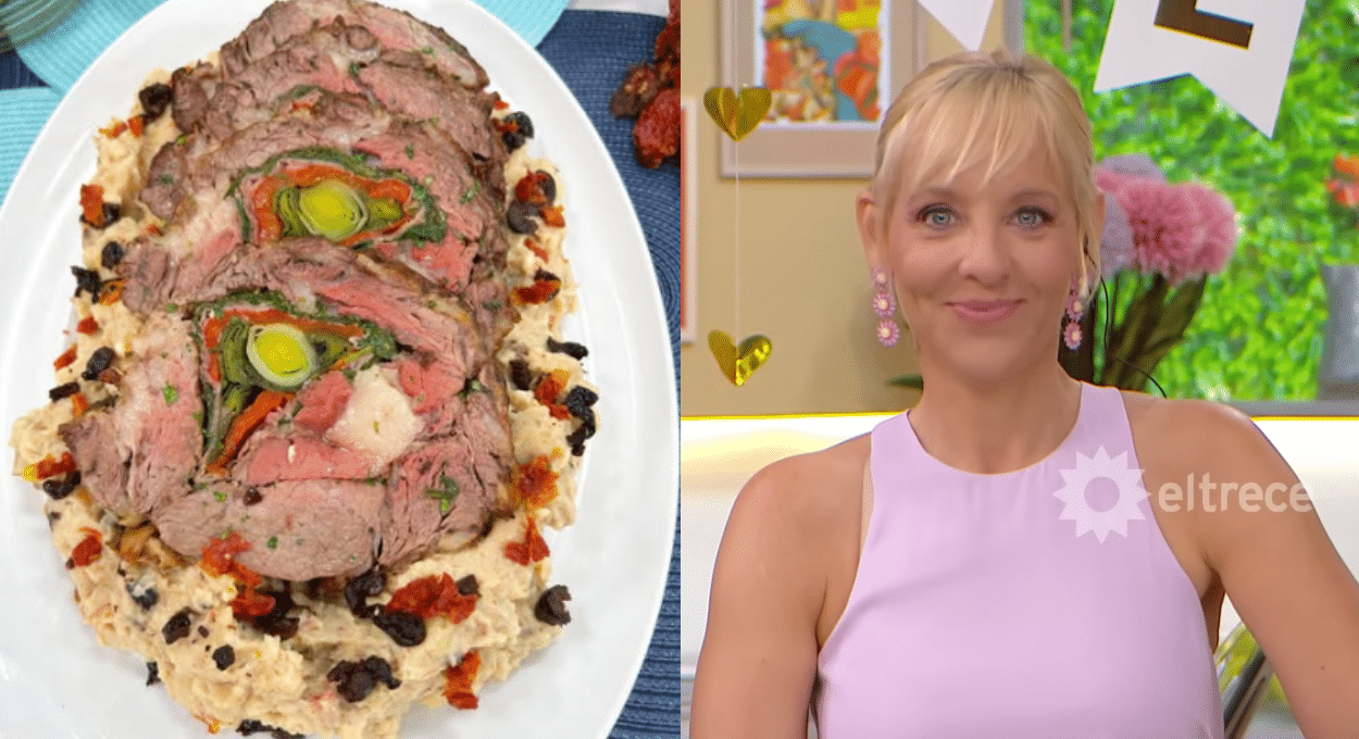 Luego, Jimena Monteverde se encargó de dar a conocer el paso a paso. «Procedimiento. Abrir el bife de chorizo tipo matambre y aplanar. Asar los puerros, salpimentados y con ralladura de limón, envueltos en aluminio», comenzó diciendo.