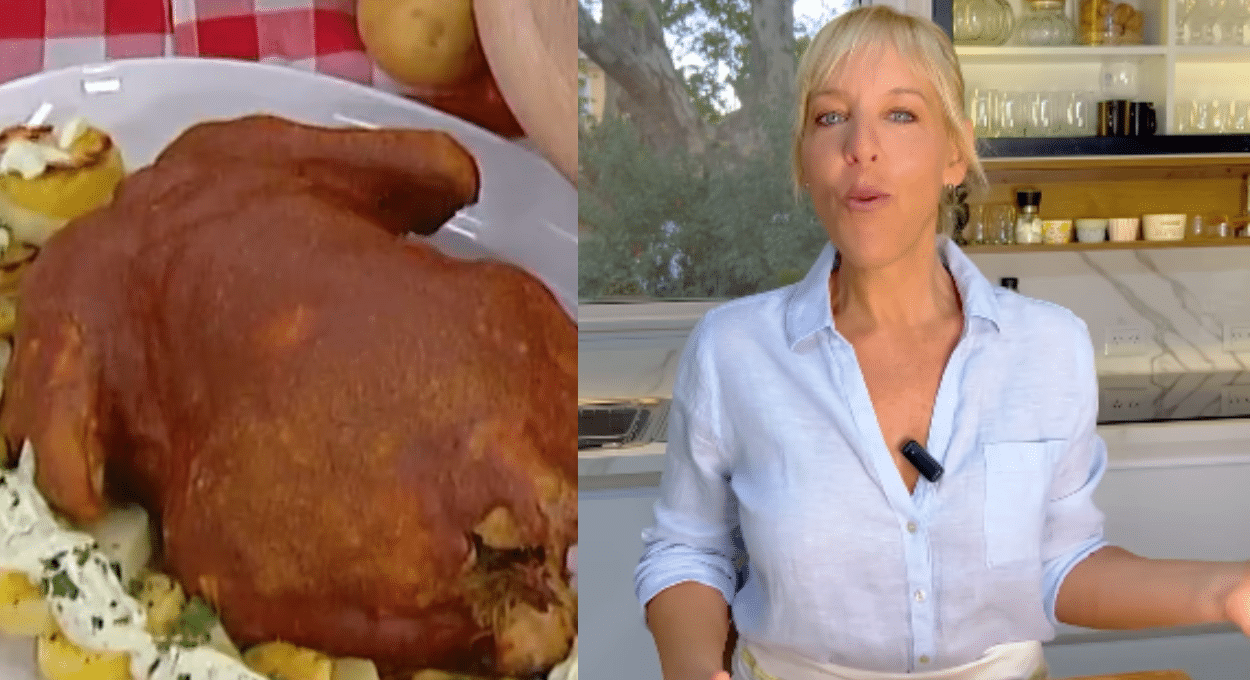 “Después le ponemos una manzana entera adentro, especias y verduras a gusto”, dijo Iliana Calabró y luego le ató las patas. Inmediatamente, la invitada siguió dando más detalles de este paso a paso.