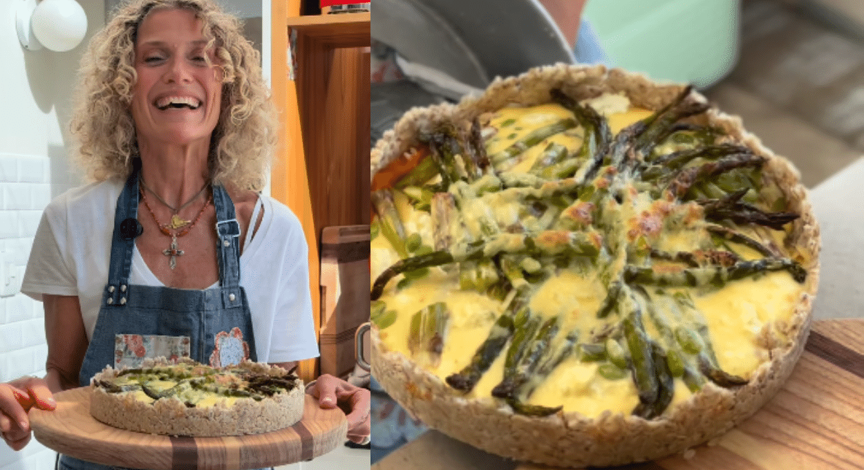 Luego, se encargó de dar el paso a paso. «Para la masa: mezclo la harina, la avena, el aceite, el agua y la sal. Podés ponerle goma xántica si querés. La mandás al horno a precocinar. Para el relleno: llevás los espárragos al horno con un poco de aceite de oliva y sal. Cortás y reservás. Armás el ligue con los huevos, el queso crema y el queso de rallar», reveló.