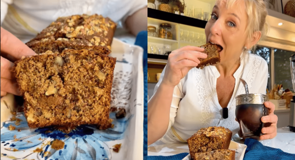 «Budín de banana en licuadora. Una receta fácil y riquísima para acompañar unos buenos mates. Lo preparé en minutos con mi licuadora para lograr una mezcla bien pareja sin esfuerzo», comenzó diciendo.
