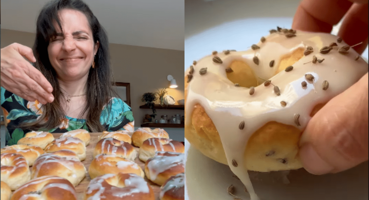 «Cuando ya levaron tenemos dos opciones, freírlas o al horno. Yo esta vez las voy a hacer al horno. A 180 grados hasta que estén doraditas. Mientras hacemos un glaseado muy fácil. Azúcar impalpable y vas poniendo jugo de limón muy de a poquito para no pasarse. Una vez que las rosquitas se enfriaron echamos el glaseado. Estas rosquitas son muy ricas», finalizó.